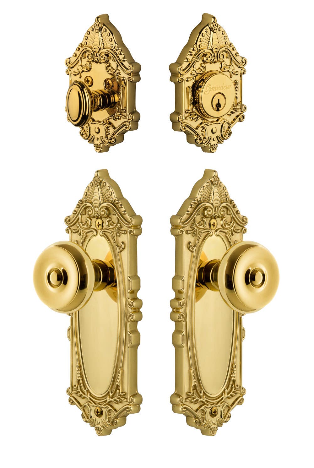 Grandeur Grande Victorian Plate w/ Bouton Knob & Matching Deadbolt