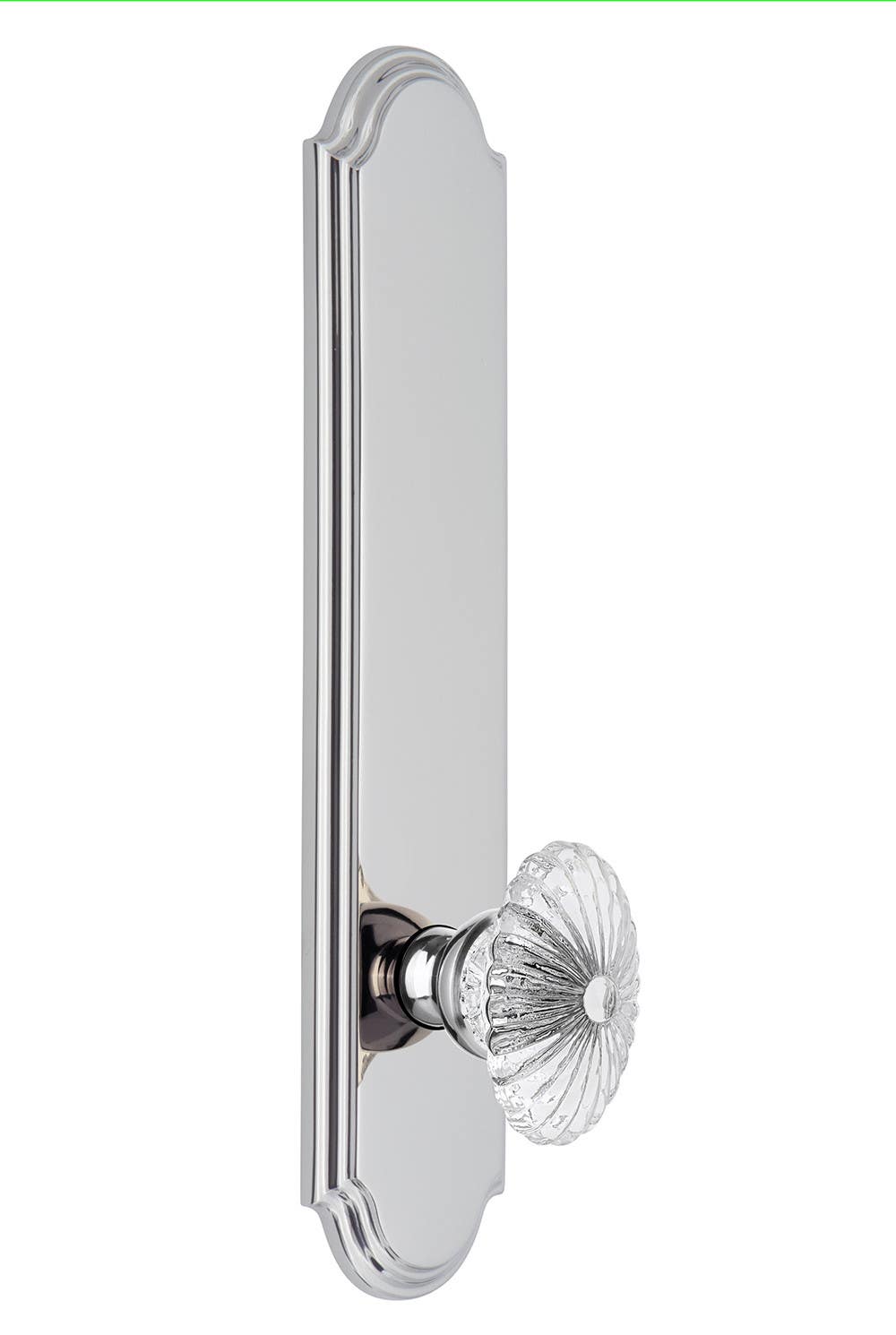 The Arc Tall Plate conveys a thoughtful gentleness that is elongated to create an artistically graceful look to your door. These tall plates are ideal for doors that are taller in height providing an aesthetically pleasing plate-to-door ratio. This tall plate is available with any Grandeur Hardware knob, lever and finish to help you mix and match your door hardware.