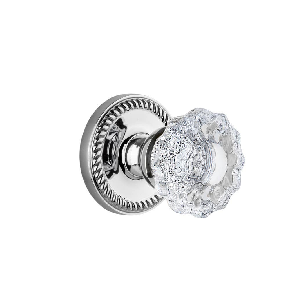 A consummate favorite for centuries, the Newport rosette sets the standard in master craftsmanship with its rich, sculpted rope detail. Pair this with our Versailles knob, with its smooth center and fluted edges, for an eye-catching look. All Grandeur crystal knobs are created from 24% lead crystal for unparalleled clarity and beauty, and mounted on a solid (not plated) forged brass base.