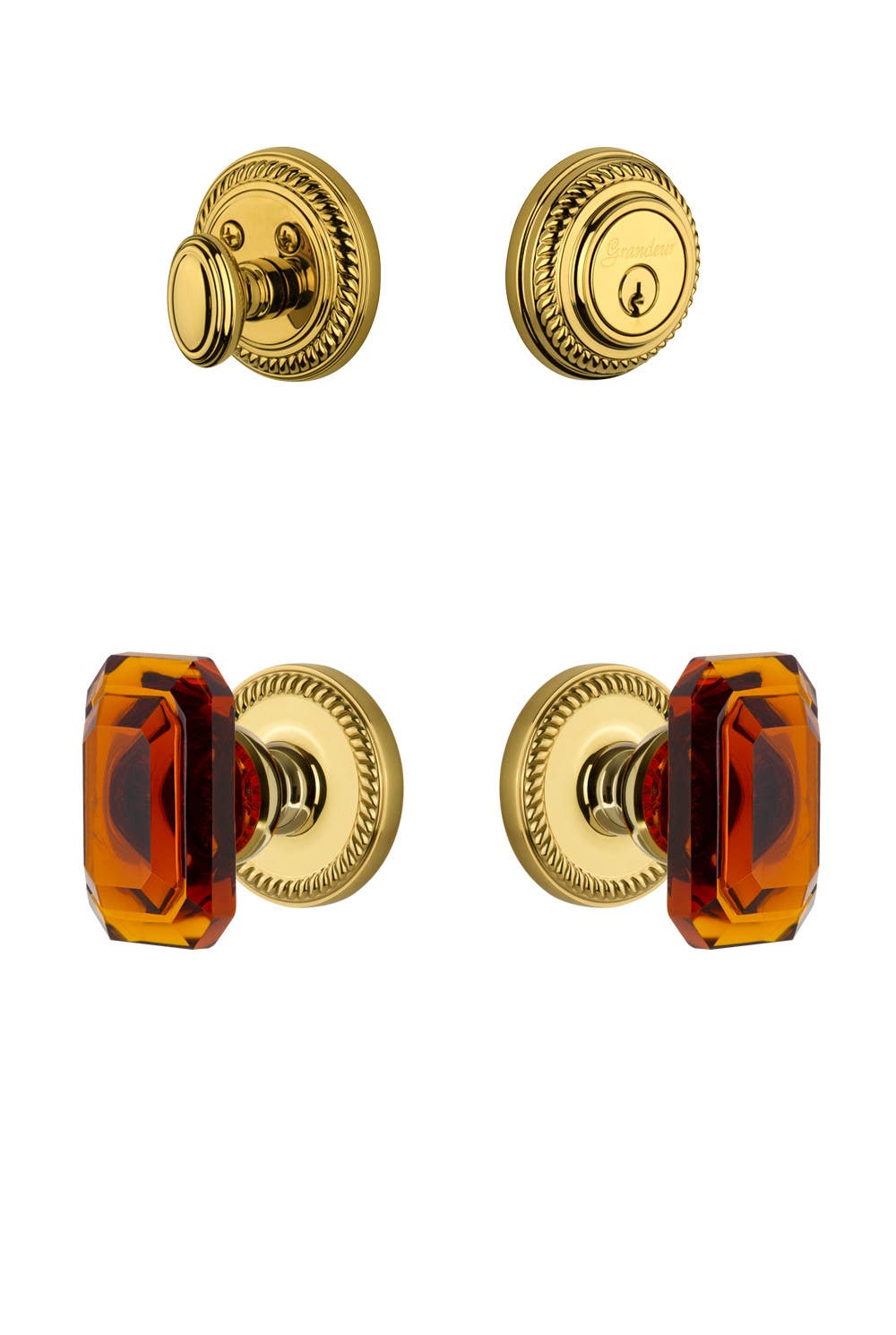 Grandeur Newport Rosette w/ Amber Baguette Crystal Knob & Matching Deadbolt