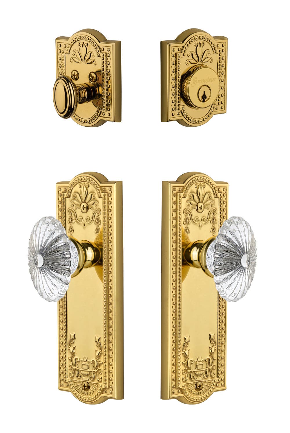 Details: Grandeur Parthenon Plate w/ Burgundy Crystal Knob & Matching Deadbolt