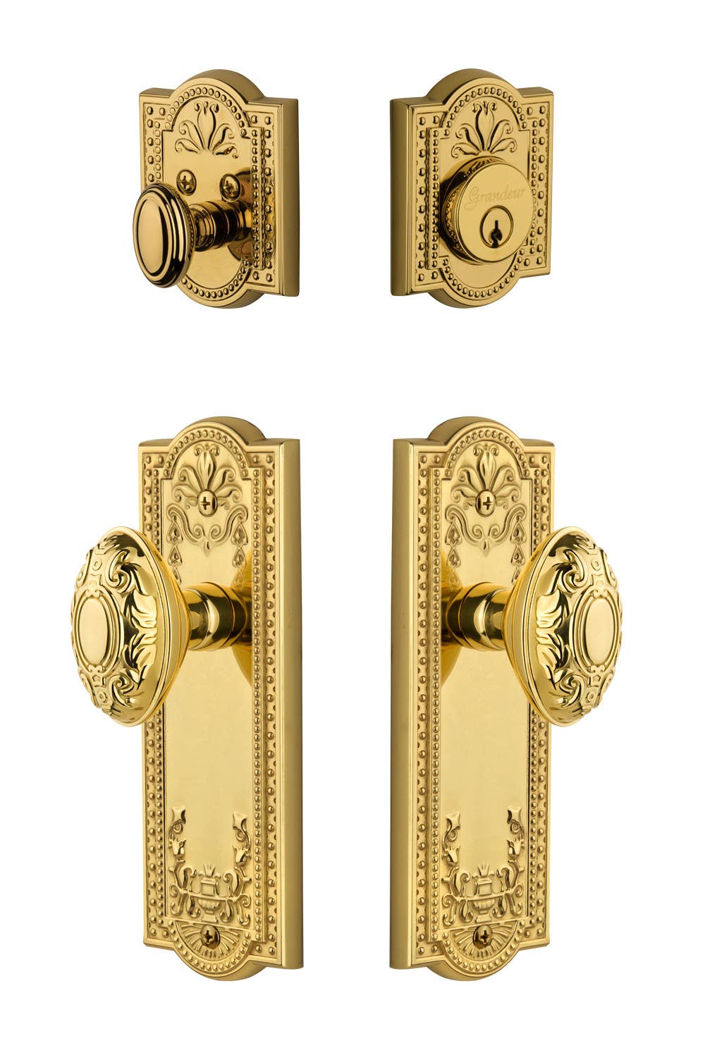 Grandeur Parthenon Plate w/ Grande Victorian Knob & Matching Deadbolt