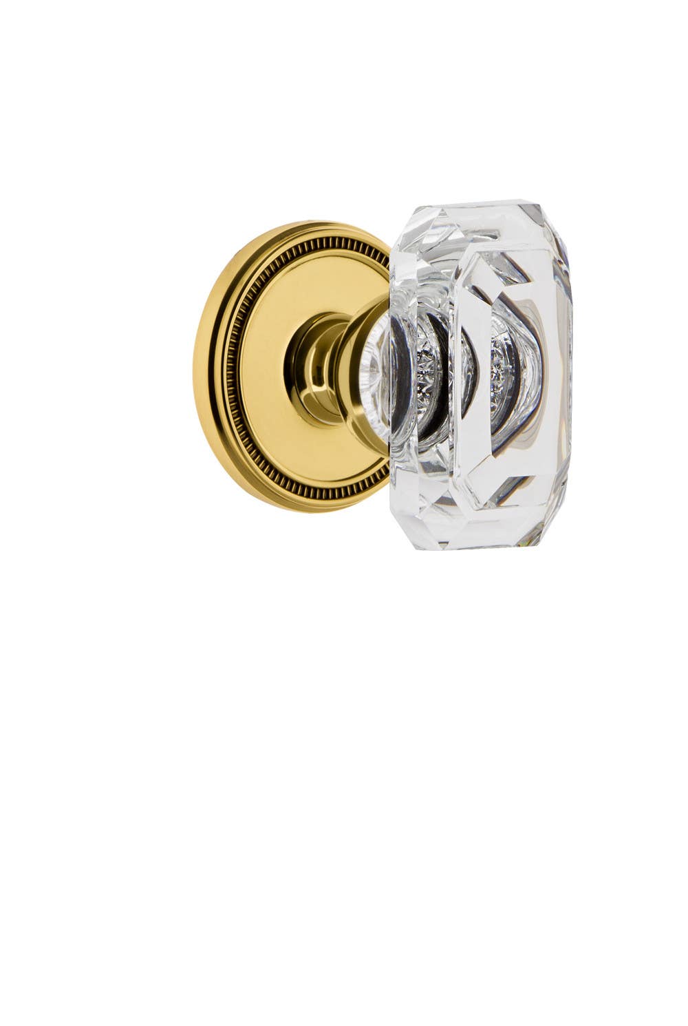 The unique Soleil plate has a corona of vivid lines that bring a dynamic boldness to any room. Paired with the Baguette Crystal knob, this elegant design combination gives the perfect look. All Grandeur knobs are created from 24% lead crystal for unparalleled clarity and beauty, and mounted on a solid (not plated) forged brass base.