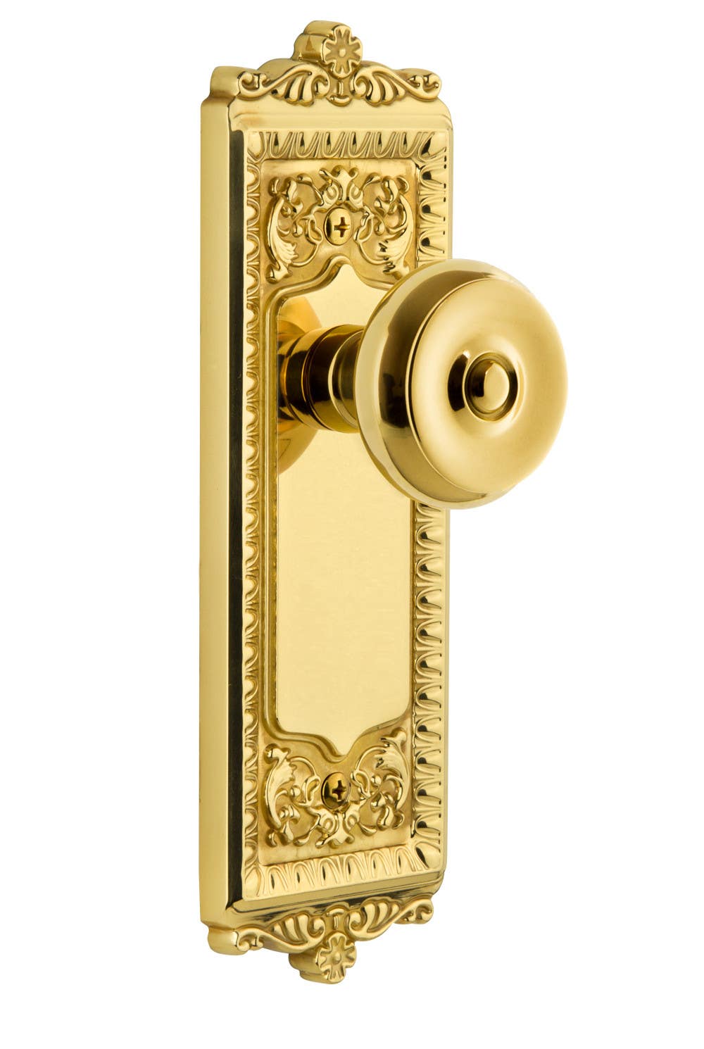 The Windsor Plate came into its current form from the neo-classical architecture made famous by Thomas Jeffersons Monticello and the royal Windsor estates in England. Adding the Bouton knob, meaning button in French, is a fitting choice for traditional or contemporary décor. All Grandeur products are created from solid (not plated) forged brass.