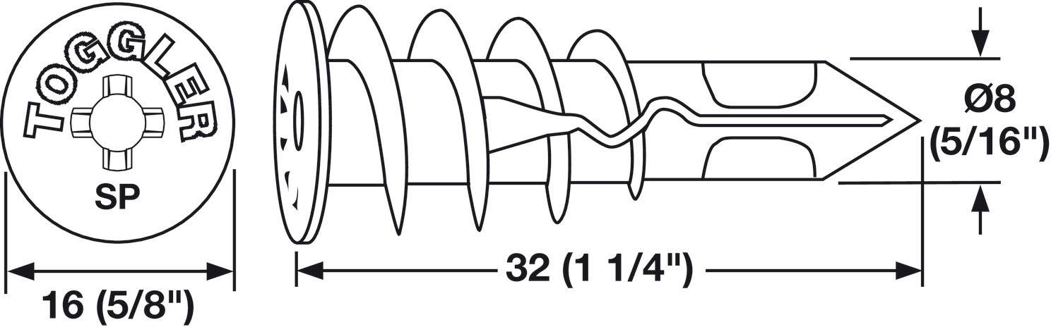 • Unique Snap Lock feature provides the positive behind-the-wall locking and holding power of a toggle bolt