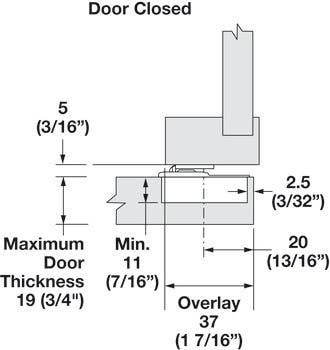 Min. 1 7/16" when plate is flush to inside of face frame