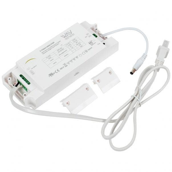 The WAV Smart Receiver/Power Supply is both a 60 watt power supply and receiver in a single unit for easy installation. Uses Zigbee technology to communicate wirelessly with smart home lighting hubs for app and voice control of single color or TandemLED tunable white LED lighting. Wireless radio frequency control available when paired with TandemLED, Uno, Duo, or Quattro wireless controllers.
