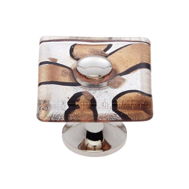 • Murano Collection Old World Bronze Finish 35 mm Silver and Gold Flat Square Glass Knob, Composition Glass and Solid Brass