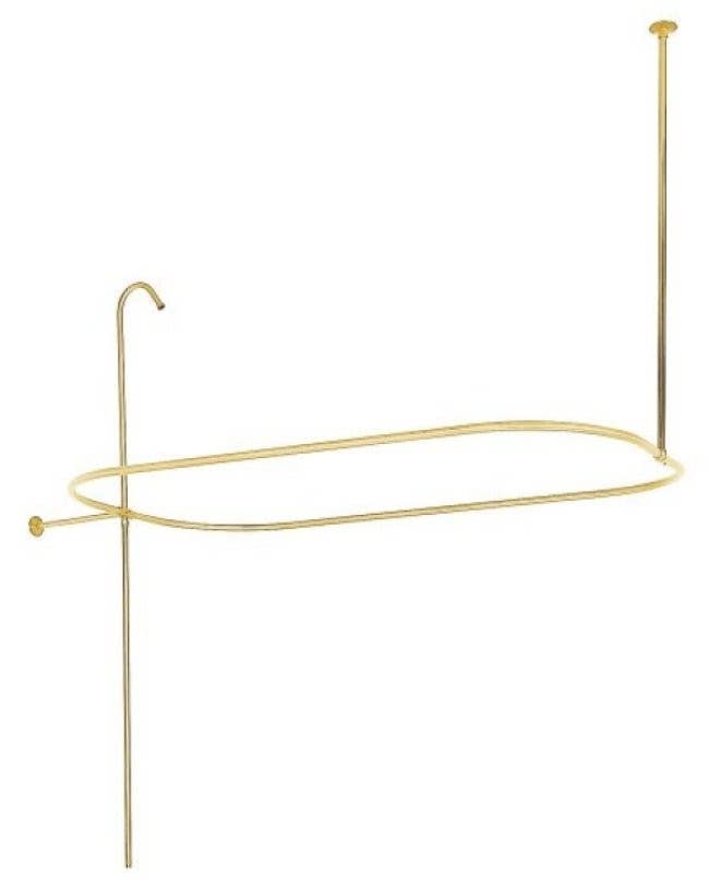 This shower ring and riser combination includes a shower ring with ceiling support and shower riser. It is constructed of high quality brass to ensure reliability and durability. Its premier finish resists tarnishing and corrosion.