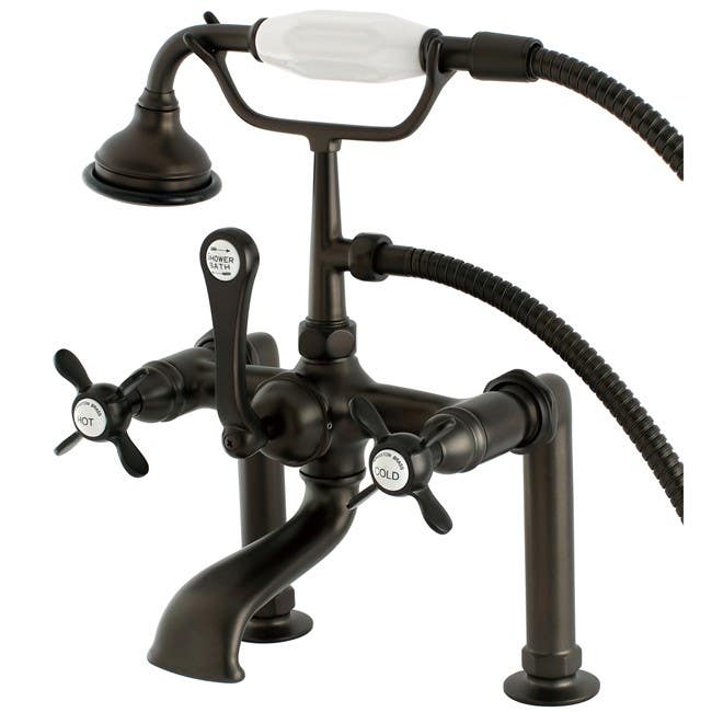 The Essex deck-mount bathtub faucet is a refined addition to complete the look of your Vintage clawfoot bathtub. Manufactured from solid brass, this sturdy bath faucet comes in your choice of 4 finishes: Polished Chrome, Polished Brass, Oil Rubbed Bronze or Satin Nickel. With a classic hand shower and premier Essex cross handles, this tub faucet will offers years of enjoyment and beauty.