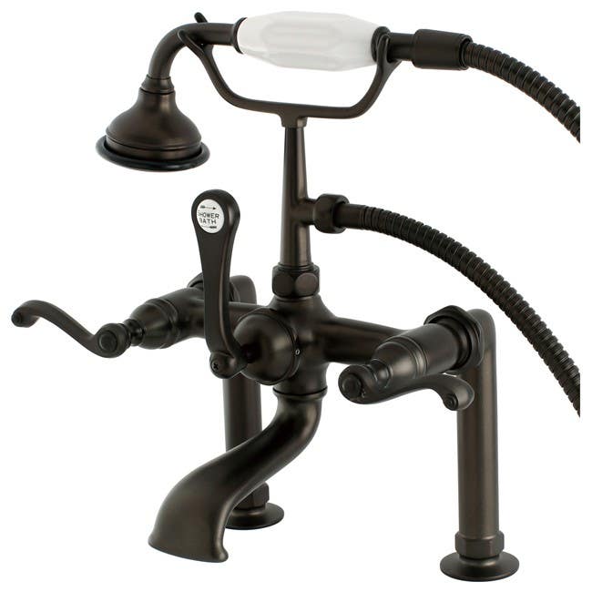 The Royale deck-mount bathtub faucet is a refined addition to complete the look of your Vintage clawfoot bathtub. Manufactured from solid brass, this sturdy bath faucet comes in your choice of 4 finishes: Polished Chrome, Polished Brass, Oil Rubbed Bronze or Satin Nickel. With a classic hand shower and premier Royale lever handles, this tub faucet will offers years of enjoyment and beauty.