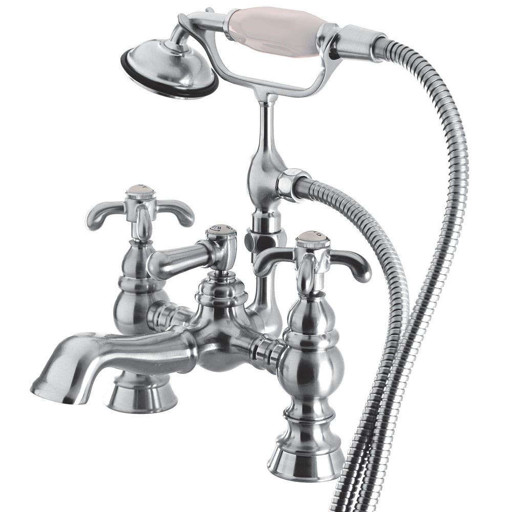 Details: Kingston Brass CC1158T Vintage 7" Deck Mount Clawfoot Tub Filler w/ Hand & Shower w/ Versailles cross