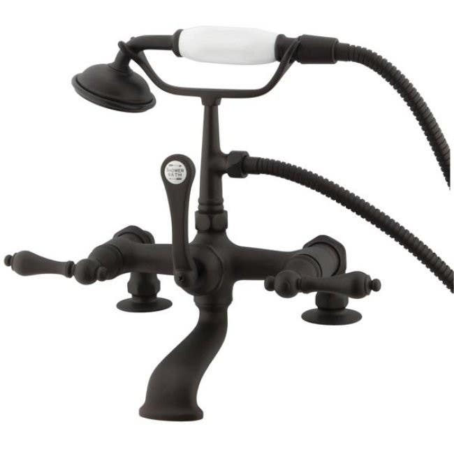 Fill your bathtub in style with this Victorian-inspired Vintage Clawfoot Tub Faucet with Handshower. This faucet is constructed from solid brass and utilizes a ceramic disc cartridge system for drip free performance. A brass handshower is included for added cleaning power. The faucet is available in 4 tarnish and corrosion resistant finishes: Chrome, Polished Brass, Oil Rubbed Bronze or Satin Nickel. Install this classic looking faucet on most deck-mounted applications with 7 inch centers.