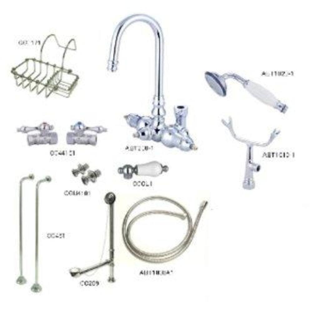 This complete Vintage Tub Filler Package is everything you need to start enjoying your new cast iron or acrylic bathtub. All necessary hardware is included and the tub filler features a gooseneck spout for extra clearance. Installation on the tub wall with 3-3/8" centers. Components are constructed from solid brass for durability and reliability.
