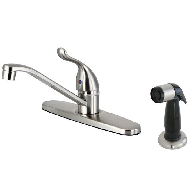 A great choice for the kitchen, the Yosemite Centerset Kitchen Faucet will look great in almost all design settings thanks to its versatile design. Manufactured to meet all federal lead regulations, this faucet is both durable and reliable. It features easy single handle operation and includes a black side sprayer. The faucet and sprayer install on standard US plumbing connections.