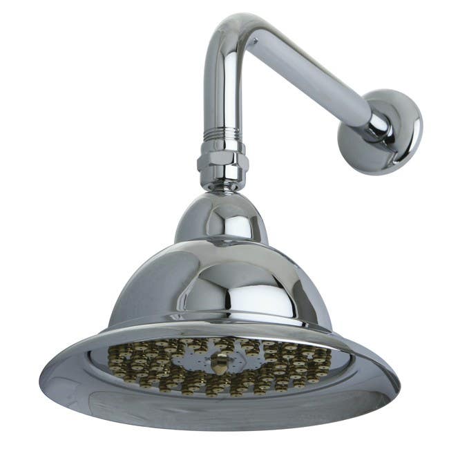 Fabricated from solid brass material for durability and reliability, Premium grade 304 Series stainless steel construction, 6" diameter spray face, 6 individual jet spray nozzles.