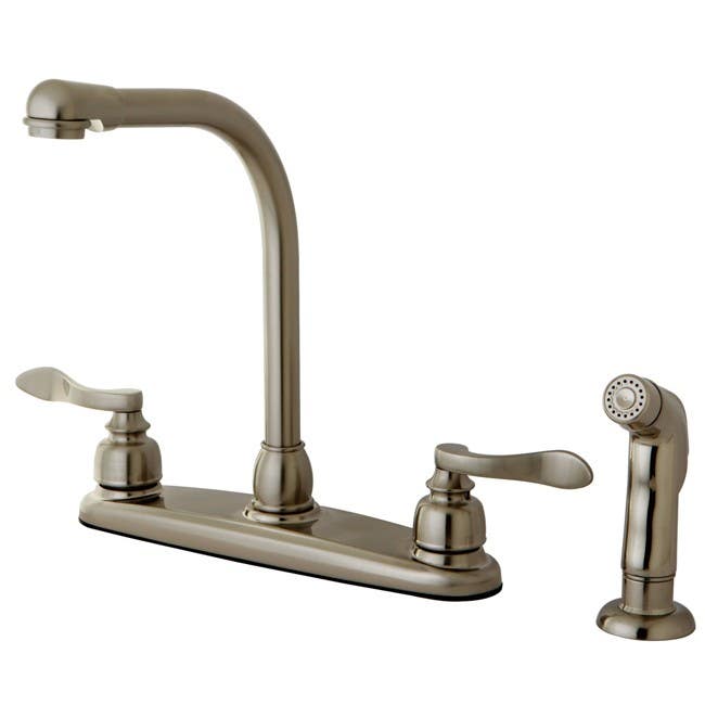 Kingston Brass KB8755NFLSP NuWave French 8" Centerset High Arch Kitchen Faucet with Twin Lever Handle & Matching Sprayer