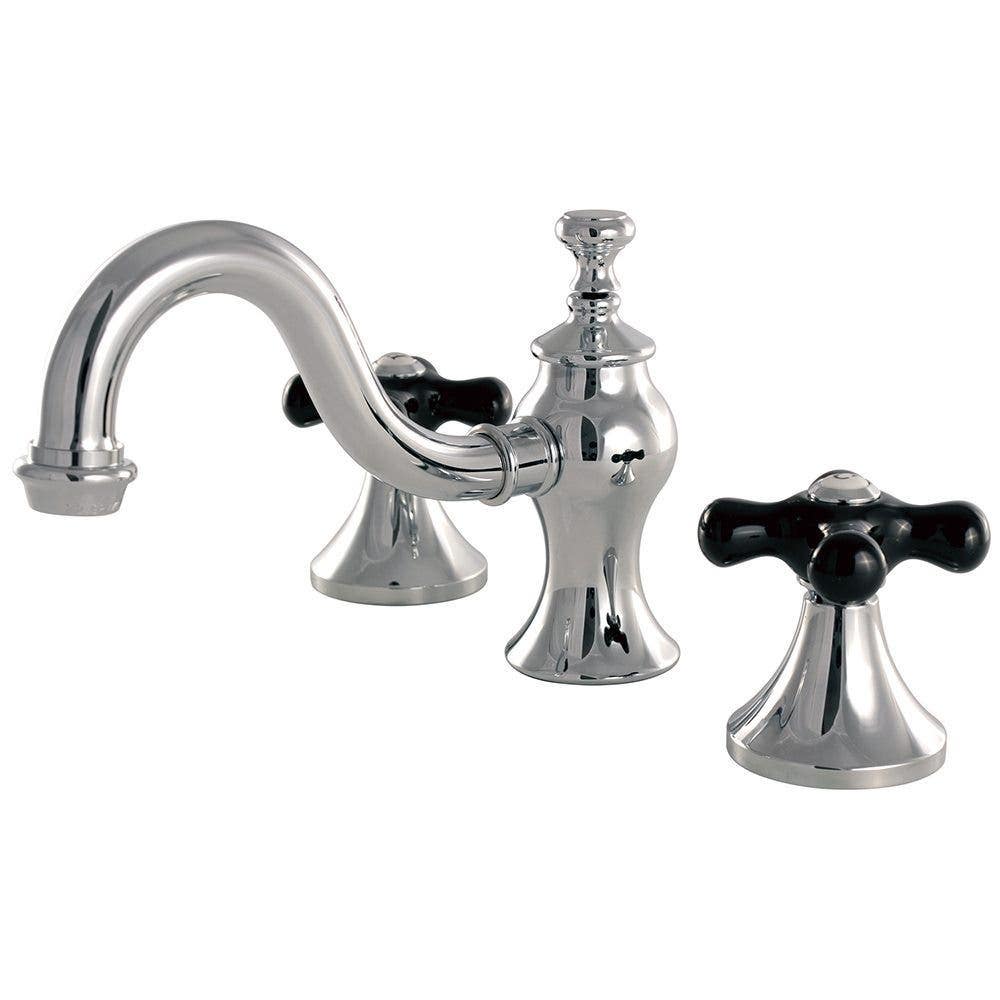 Crafted in commendations to English nobility, the exemplary design of this faucet manifests regality and elegance with its black porcelain handles. Ideal for more spacious bathrooms, widespread faucets are more spread apart and feature a 3-hole installation. The Duchess 8-inch widespread bathroom faucet with brass pop-up and its featured sturdy brass construction and premium polished chrome finish are guaranteed to glamorize your home