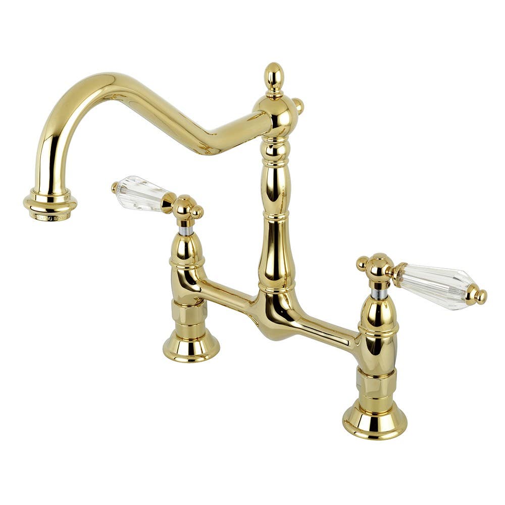 Beautiful design and Vintage styling come together in this bridge faucet from the Wilshire collection. Manufactured from solid brass, this stunning faucet features a ceramic disc cartridge system and is available in 4 durable finishes. The faucet features a tall spout and is perfect for Vintage decors with the traditional bridge faucet styling. Its classic cross handles and clean geometry give the final touches to this classic kitchen faucet.