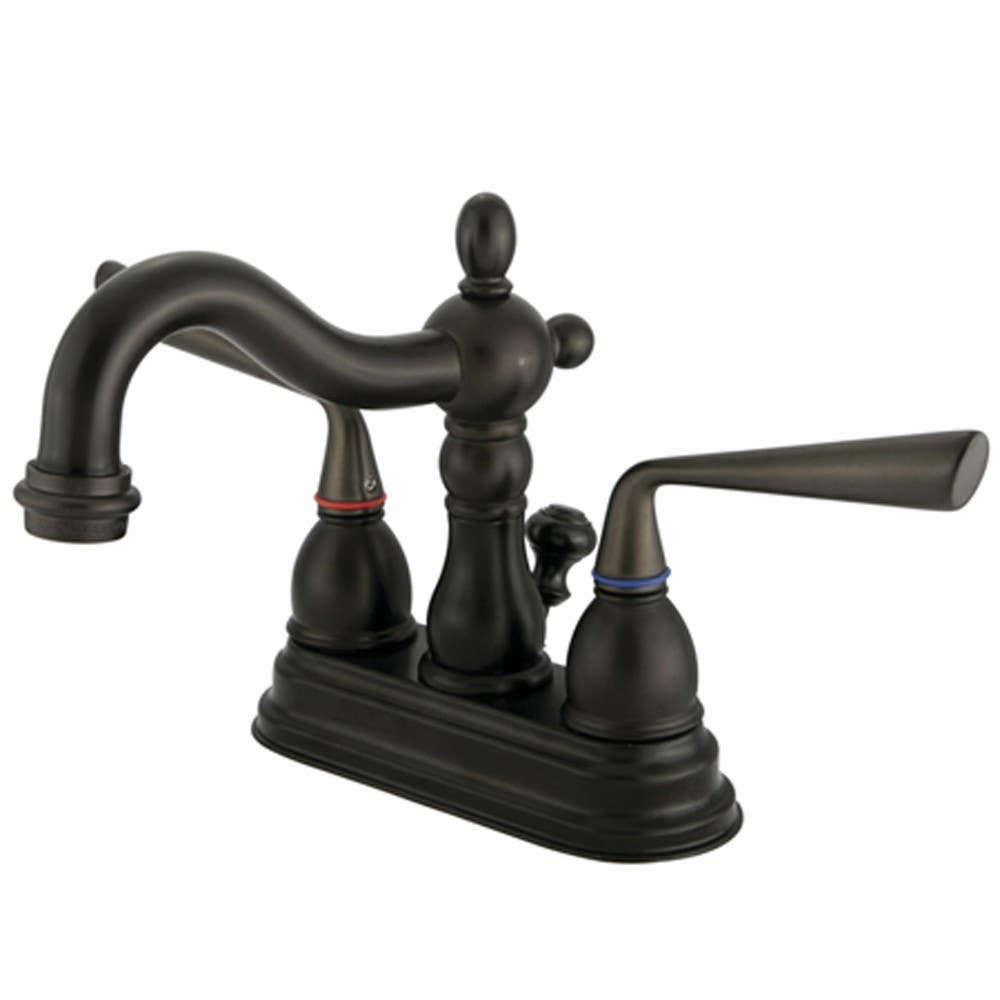 Details: Kingston Brass KS160 Silver Sage Two Handle 4" Centerset Lavatory Faucet w/ Brass Pop-up