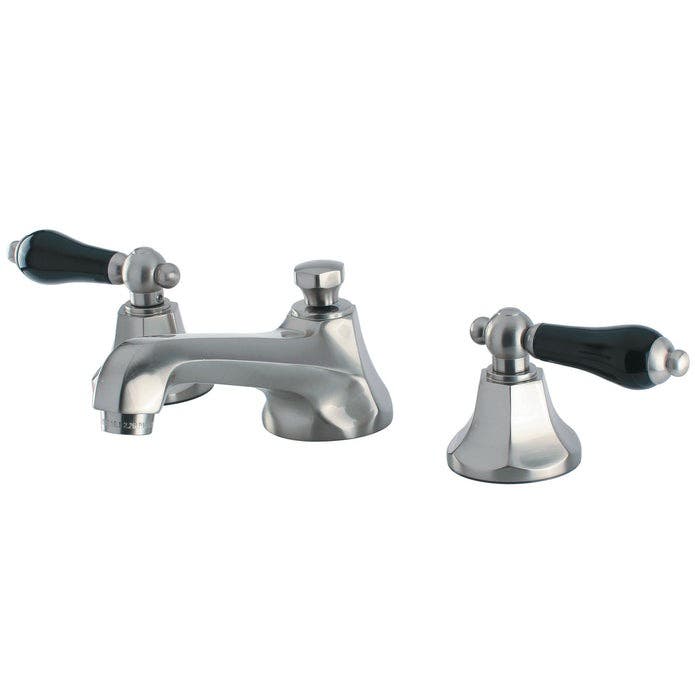 Crafted in commendations to English nobility, the exemplary design of this faucet manifests regality and elegance with its black porcelain handles. Ideal for more spacious bathrooms, widespread faucets are more spread apart and feature a 3-hole installation. The Duchess widespread bathroom faucet with brass pop-up and its featured sturdy brass construction and premium brushed nickel finish are guaranteed to glamorize your home's modern ensemble for years to come. Glamorize your home today with the traditional elegance of this faucet. A matching finish drain is also included. ADA compliance for faucets ensures accessibility for individuals with disabilities. Faucets must be designed for easy operation by persons with mobility issues, featuring lever handles that require minimal effort to turn on and off. These elements promote independence and safety, allowing individuals with mobility impairments to use the faucets with ease and dignity, in line with the Americans with Disabilities Act (ADA).