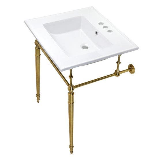 Kingston Brass KVPB25227W4 Console Sink With Brass Legs, White, 25"