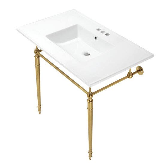 Kingston Brass KVPB37227W4 Ceramic Console Sink with Brass Legs, White, 37"