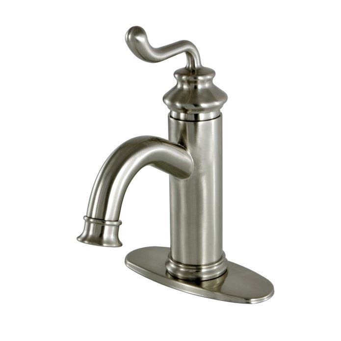 Kingston Brass LS5418RL One-Handle 1-Hole Bathroom Faucet with Deck Plate and Push Pop-Up Drain, Brushed Nickel