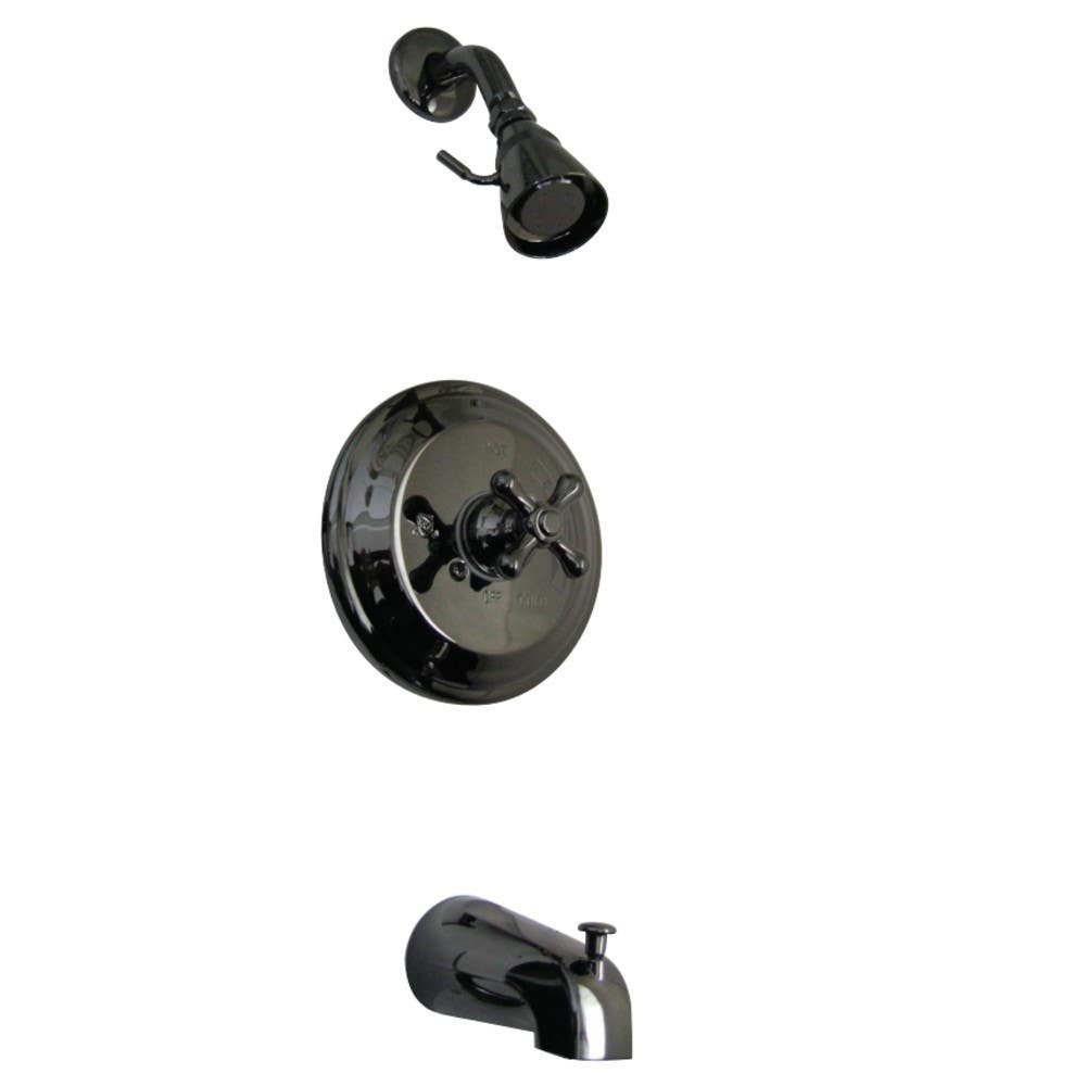 Details: Kingston Brass NB3630AX Water Onyx Pressure Balanced Tub & Shower Faucet w/ Metal Cross Handle