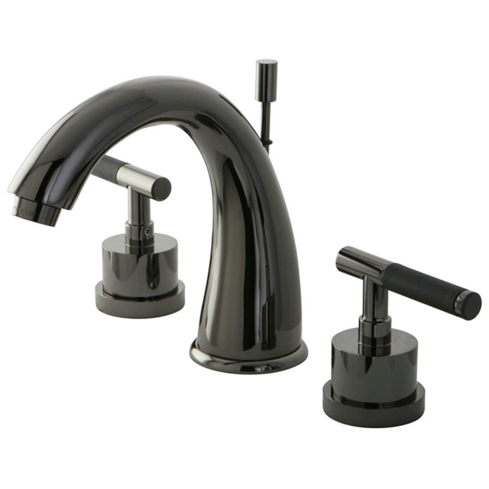 Kingston Brass NS2960DKL Water Onyx widespread lavatory faucet w/ lever Handles & brass pop up drain, Black Nickel