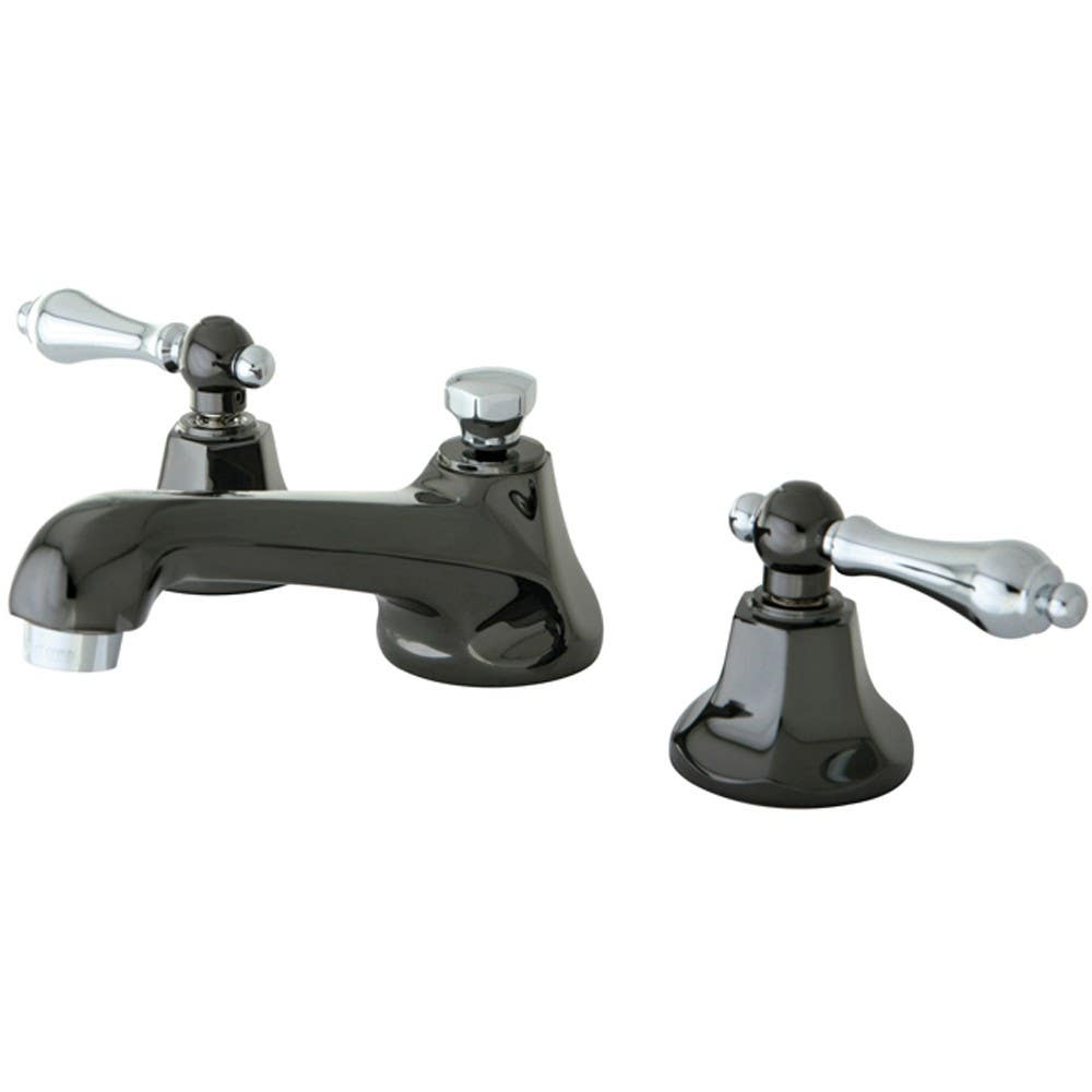NS4460AL Water Onyx widespread lavatory faucet with lever handles and brass pop up drain, Black Nickel