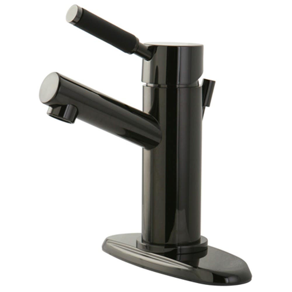 Kingston Brass NS8420DKL Water Onyx single Handle lavatory faucet w/ anti-slide Handle sleeve & brass pop up drain, Black Nickel