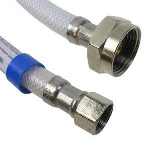 Toilet Connector, Flexible Poly Braided Vinyl Connector, Brass Insert / Chrome-Plated Brass Nuts, Compression Ballcock Hang Tag