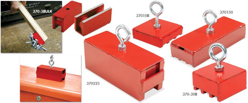 These models lift up to 225 pounds. Attach a rope or chain to the eyebolt and go fishing for metal objects in tanks, vats, waterways, or other hard-to-reach places. Move parts in and out of degreasing tanks. All are painted red. Sturdy welded construction. Eyebolt and nuts included, except for 370-3Bulk.