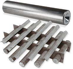 High quality magnetic tubes are available for individual design of hopper grates or other magnetic applications. These 1" diameter magnetic tubes can be made with Alnico, Ceramic or Rare Earth magnet material, are manufactured to custom length, and sold by the inch. For use with very slow, free—flowing materials such as plastics, foods, cosmetics, grains and minerals. They also feature 1/4 — 20 tapped aluminum end plugs. Please call for a quote. Made to order.