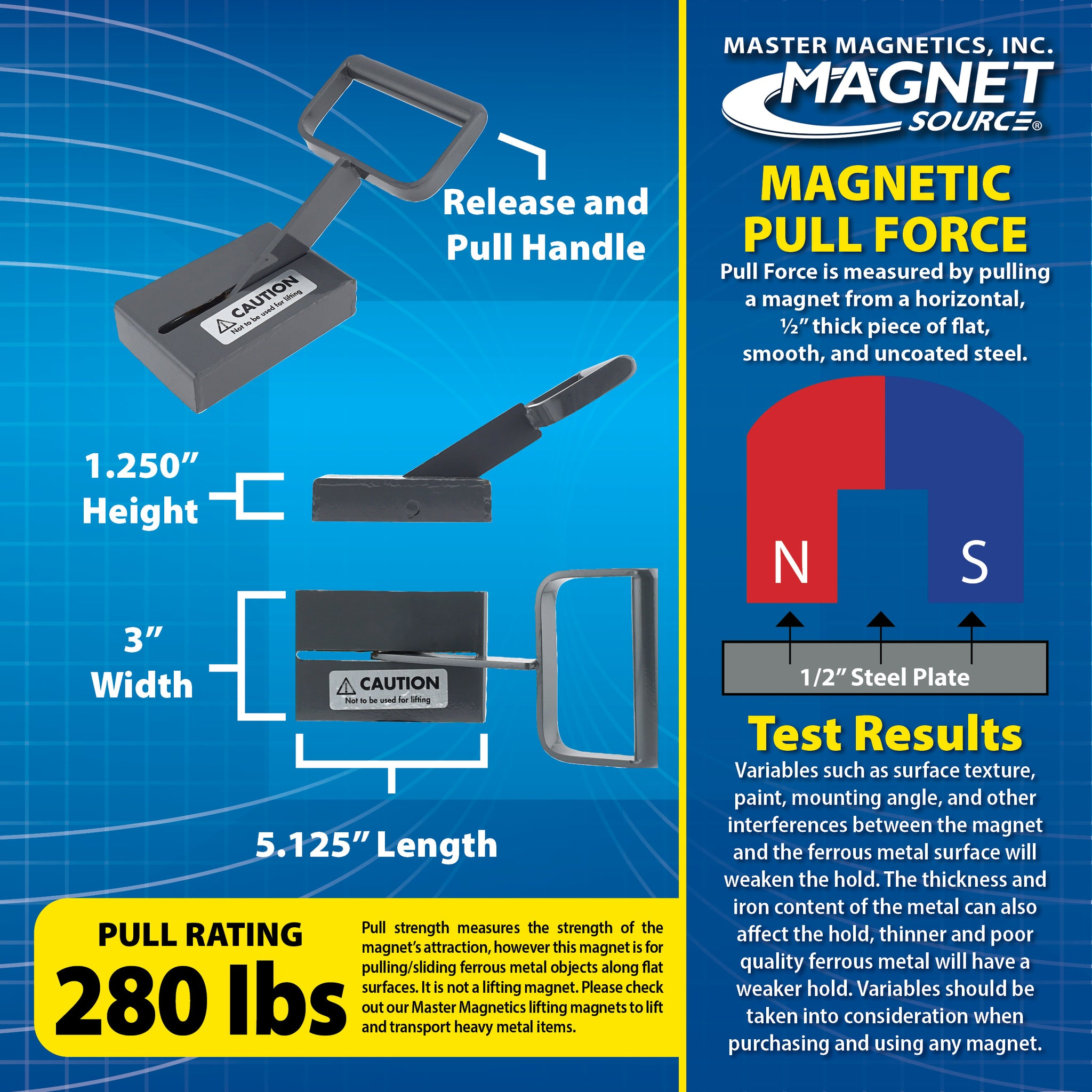 Powerful magnetic gripper handle magnets allow a firm grip on steel sheets and plates. This magnet puller is primarily designed for sliding and pulling. A forward push of the handle releases the material. Each is built with durable welded stainless steel construction.