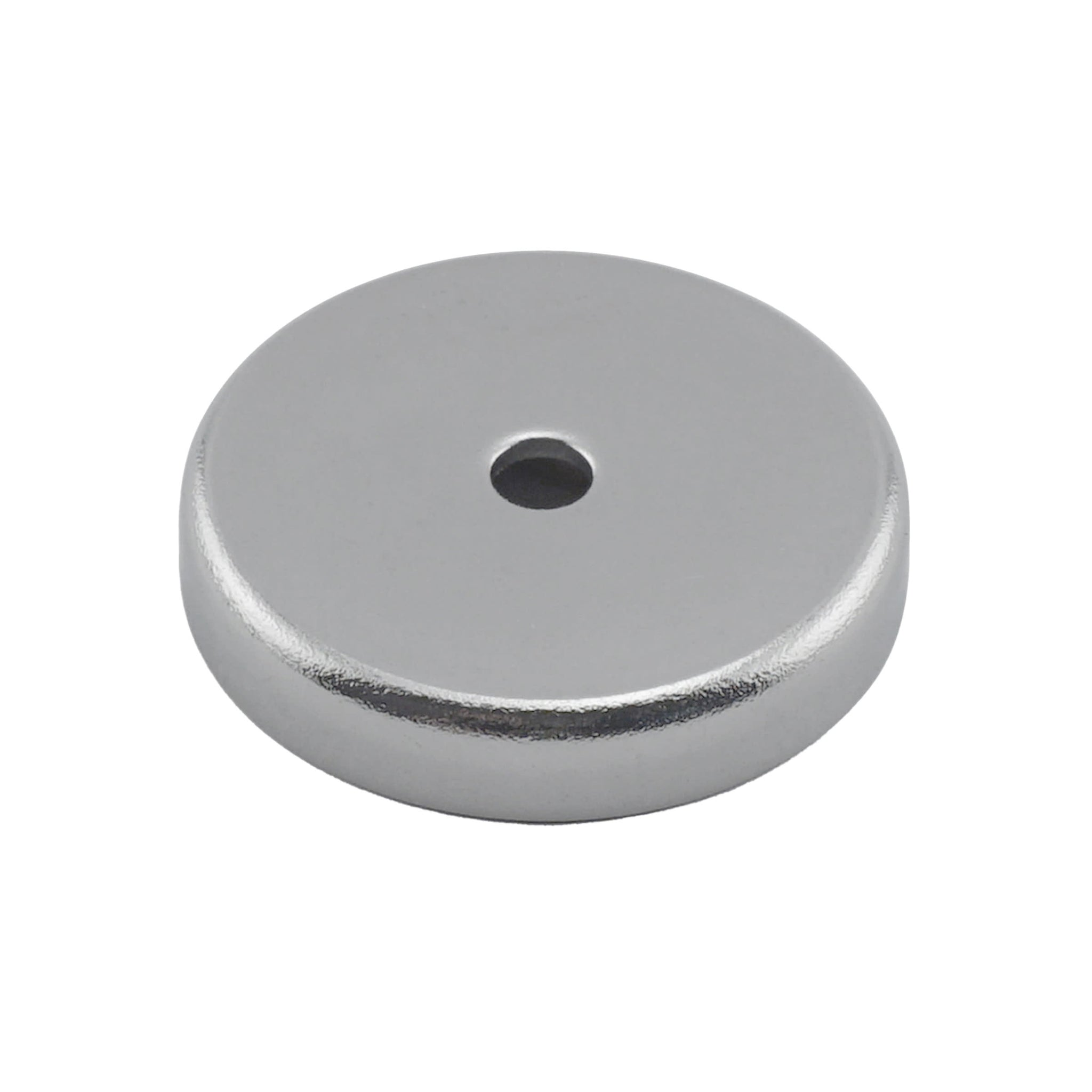 Round base magnets are powerful, low-profile magnets with an attachment hole in the center. Attach a hook or knob to position or hold inspection equipment, indicator gauges, lamps, signs, antennas and more. Magnetic on one side.