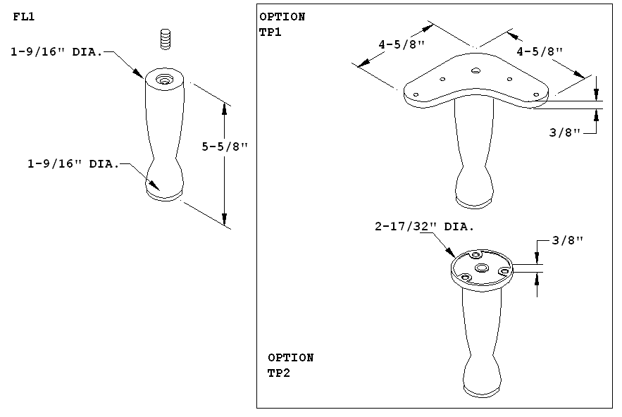 Choice of either 2 top plates: TP1 4 5/8" L-shaped top plate for corner mount, or TP2 is a 2 17/32" diameter round top plate.