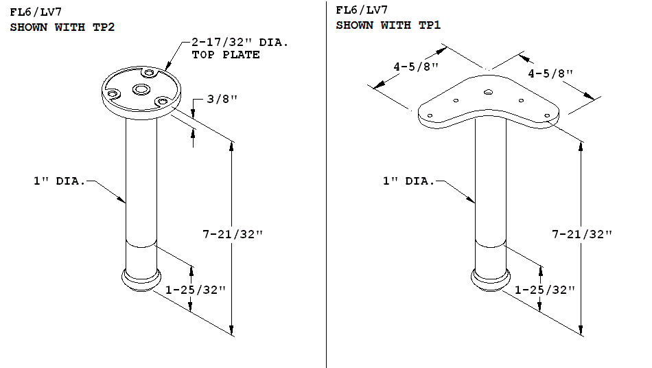 Size: 7 21/32" high overall by 1" diameter, including LV7 leveler.