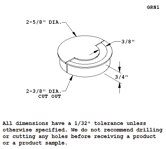Size: 2 5/8" overall diameter, fits into 2 3/8" hole. 3/4" deep.