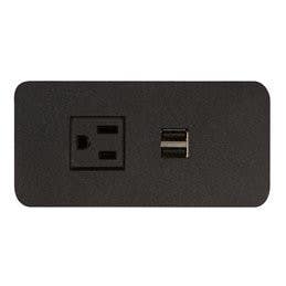 Flat panel sits nearly flush with the surface with one electrical outlet rated 12A/120VAC and a 2.1A dual USB charger. Charge up to two mobile devices at once, including phones, iPads, or tablets while still freeing up the outlet for other devices. Soft, rounded corners and extremely low profile make this a perfect addition to virtually any surface. Adjustable mounting brackets slide up against the underside of the surface on either side to secure into place.