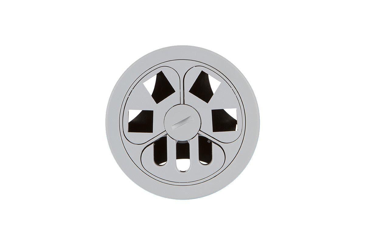 Round flush-mount grommet has three chambers to be populated with an insert with slots for Wire Management and two unloaded inserts to accept two Keystone jacks each. The modular kidney-shaped inserts can easily be swapped out or removed and used in any configuration as needed by unscrewing the center locking ring and removing the insert. For a list of available keystone jacks, click here.