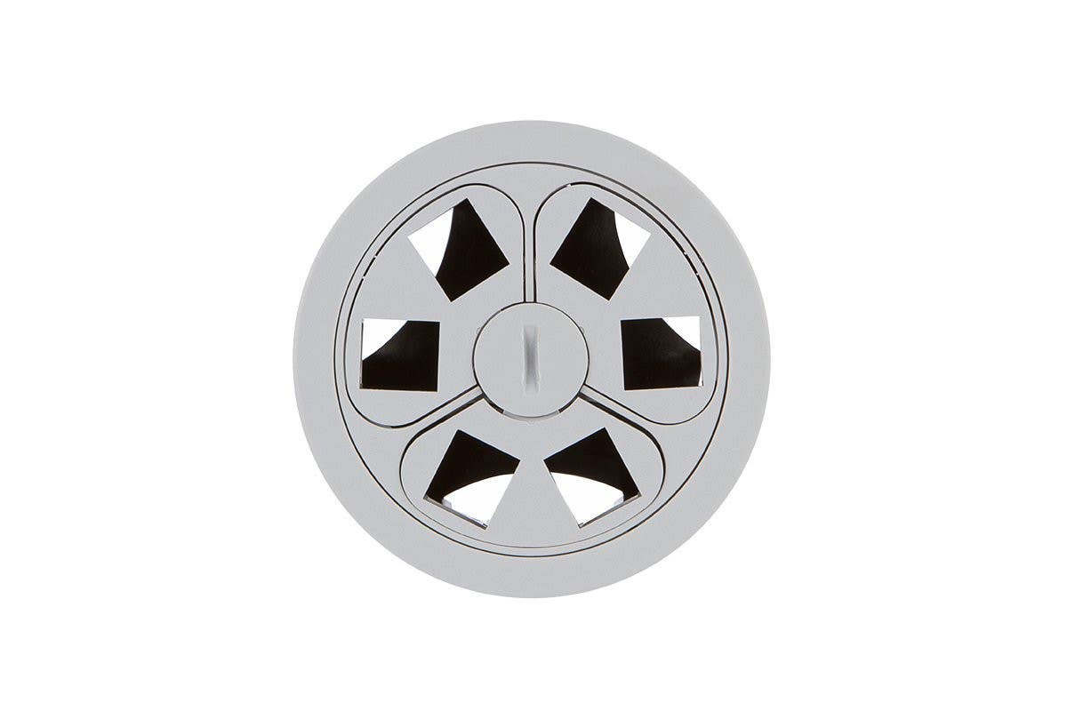 Round flush-mount grommet has three chambers to be populated with unloaded inserts to accept two Keystone jacks each. The modular kidney-shaped inserts can easily be swapped out or removed and used in any configuration as needed by unscrewing the center locking ring and removing the insert. For a list of available keystone jacks, click here.