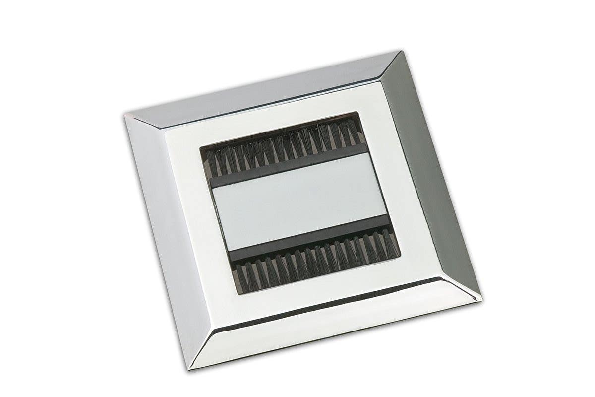 Multi-purpose Square Metal grommet, suitable for any desktop. Excellent retrofit option to dress up an existing grommet opening. Pass cables through the openings on either side of the center strip. Aluminum strip with brush liners on either side included, or change it out for an optional USB hub splitter, SQR1/USBHUB. USB hub sold separately.