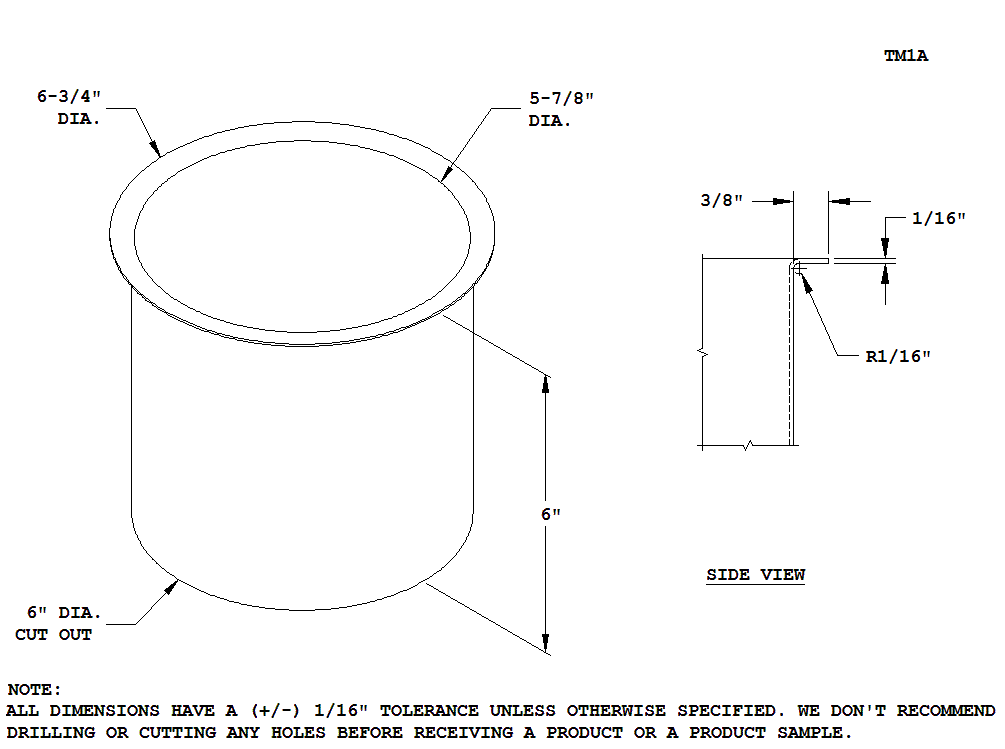 Tolerance: +/- 1/16".