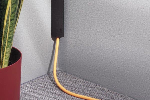 Our good friend and 1988 Design Contest Winner for his "Clean Line" Wire Manager, Aaron Zorndorf, has come up with a practical solution as well as a neat design that subtly blends into the corner. The Corner Raceway opens easily from one side with a little finger grip; on the other side is an "invisible hinge" co-extrusion. Just open, place wires inside, and snap closed. Each piece comes with double-sided tape; just remove and stick in place.