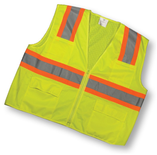 Details: Mutual Industries 16369 Class 2 Lime Surveyor 4" Orange/Silver/Orange Pouch Pockets
