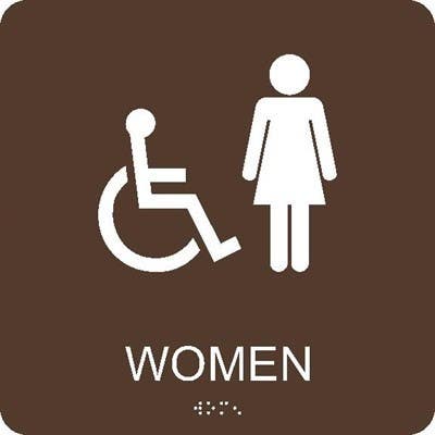 Meet the needs of your facility. Post our Women/Handicapped Braille sign to notify all women where the restroom is located.