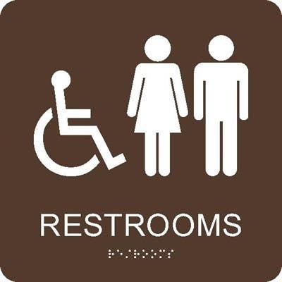 Inform everyone where the restroom is. Use this sign to inform men and women, handicapped and visually impaired persons where the restroom is located.