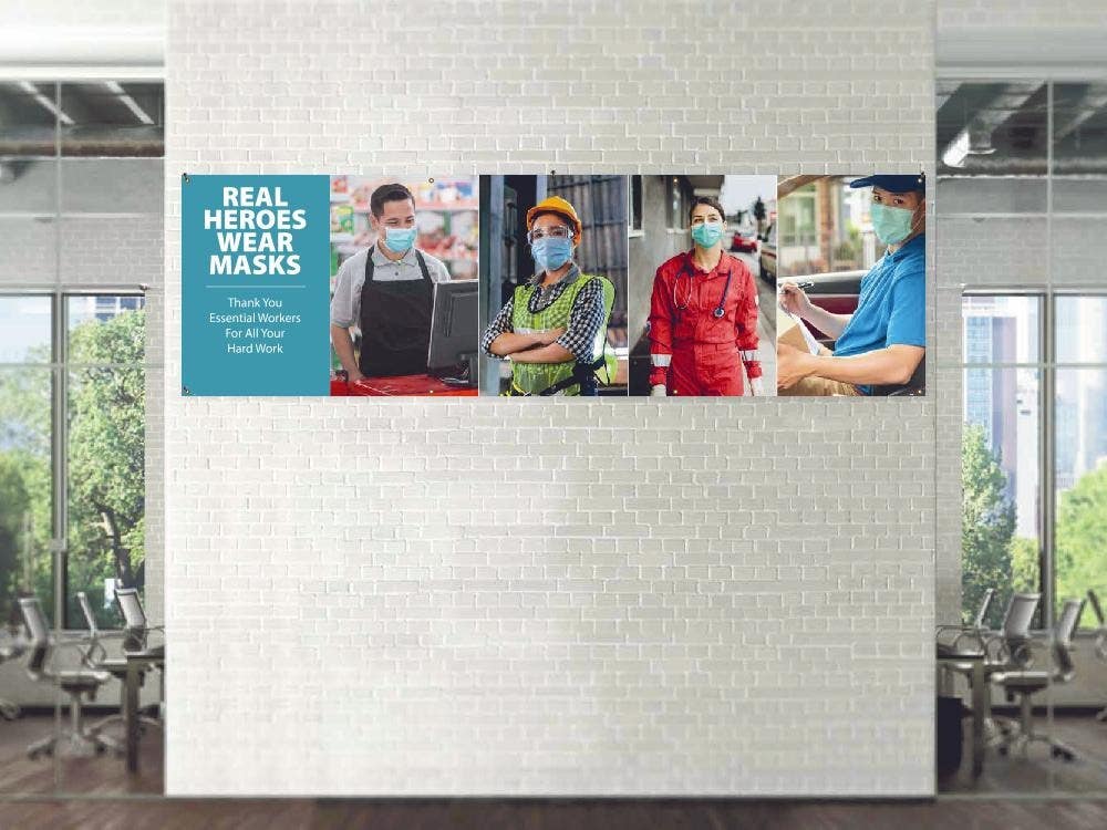 Details: AccuformNMC BT Real Heros Wear Masks, Essential Workers Banner Vinyl Banner w/ Grommets